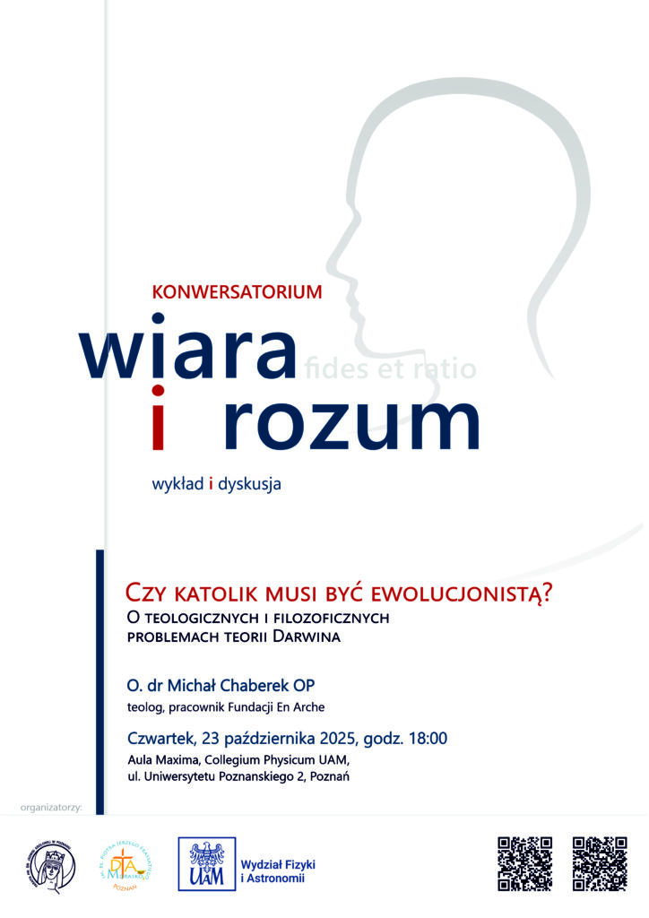 - Organizatorzy zapraszają na kolejne konwersatorium z cyklu „Wiara i rozum” na Wydziale Fizyki UAM na Morasku w czwartek 23 października. Szczegóły na plakatach.